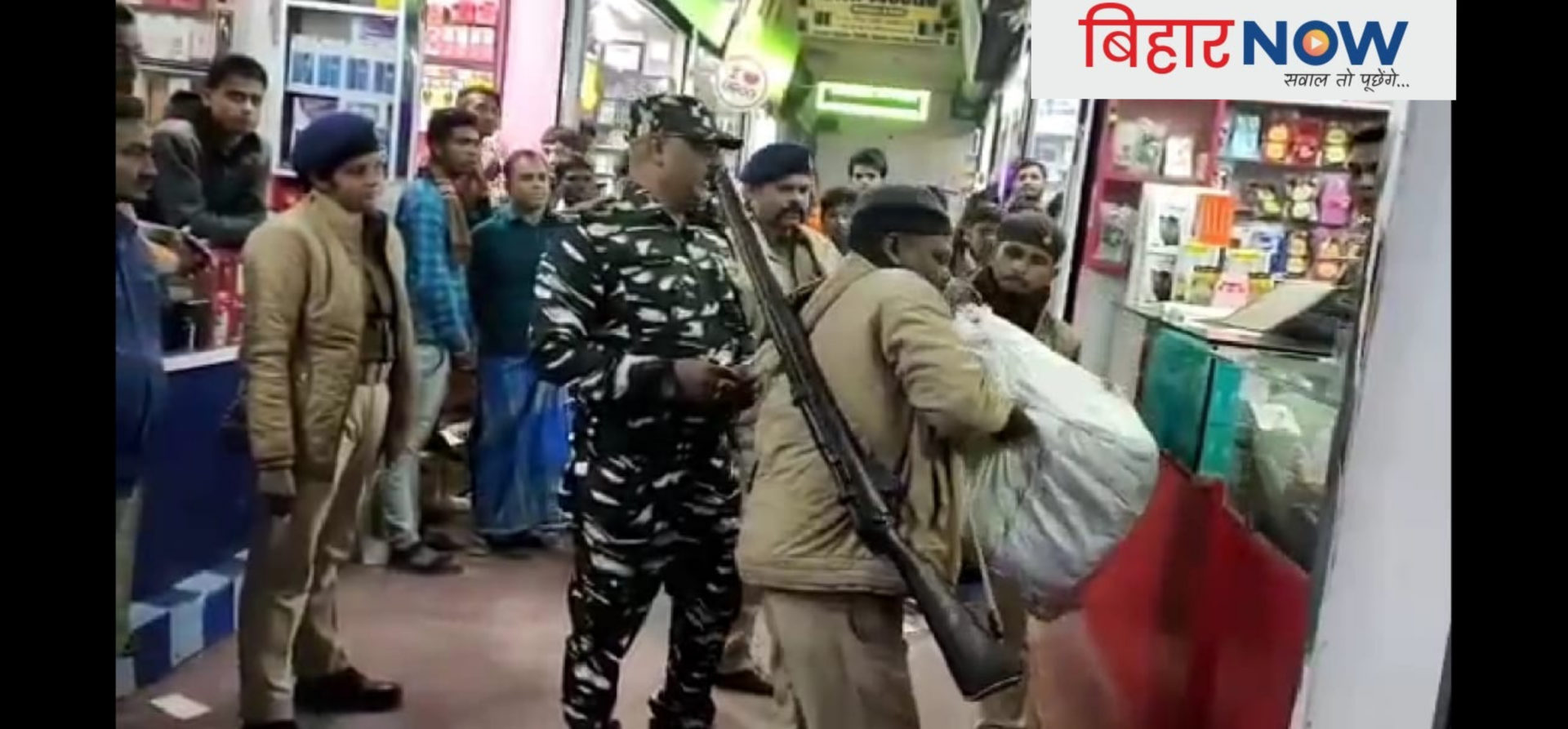पुलिस ने मौके से दूकान दार पिता पुत्र शराब कारोबारी को गिरफ्तार किया है। गिरफ्तार शराब कारोबारी नगर थाना क्षेत्र के चट्टी रोड कन्हैया साह और उसका पुत्र पिंटू कुमार को गिरफ्तार किया है। गिरफ्तार पिंटू कुमार ने बताया कि वह अपने किसी रिश्तेदार के शादी समारोह के लिए ट्रेन से शराब की कार्टून मंगाई थी फिलहाल पुलिस पूरे मामले की जांच कर रही है।