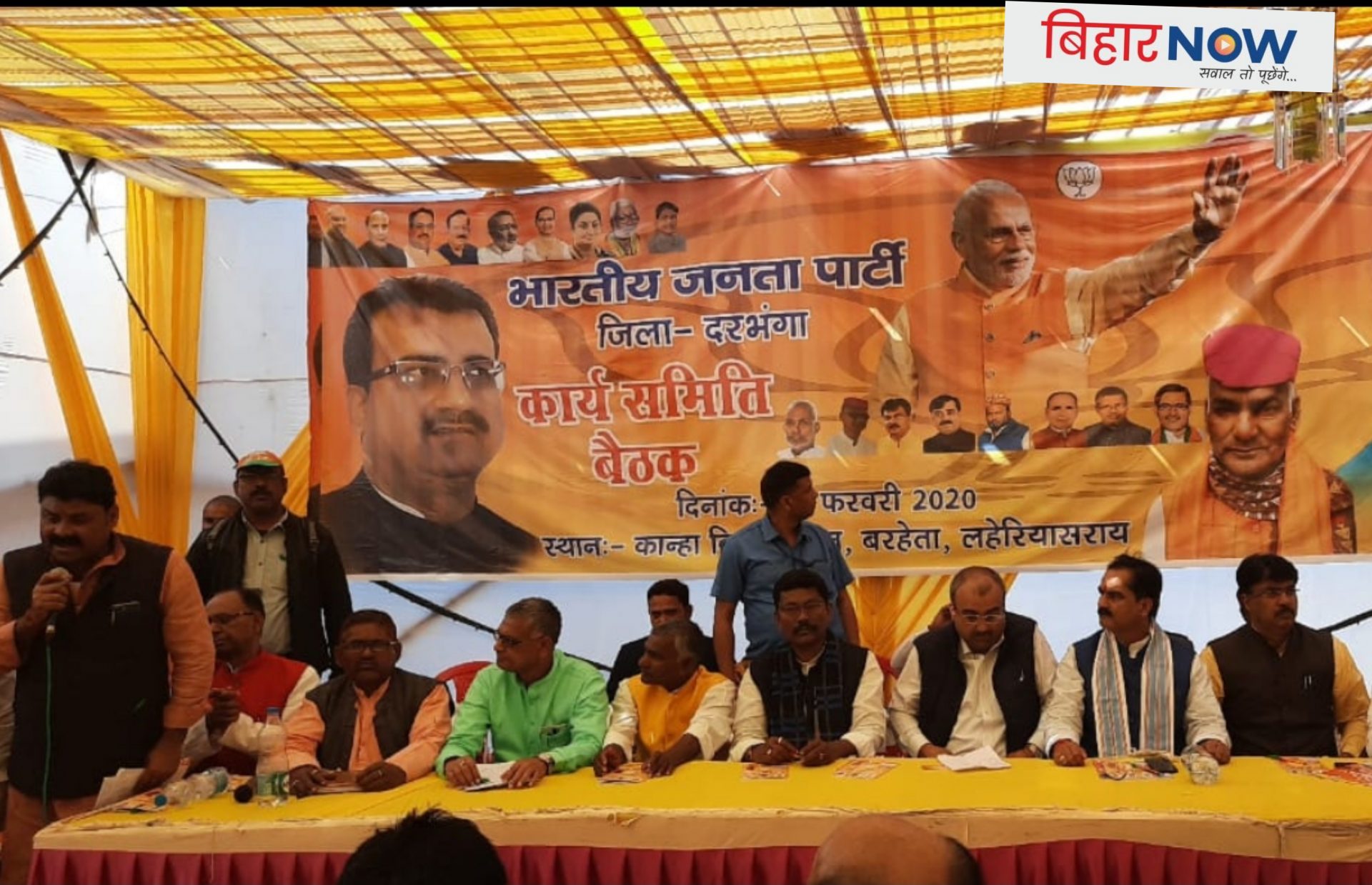 दरभंगा में बीजेपी की कार्य समिति की बैठक आयोजित की गई..इस मौके पर मंत्री मंडल पाण्डेय, सांसद गोपाल जी ठाकुर, विधायक संजय सरावगी समेत जिले और ब्लाक लेवल के तमाम नेता व बीजेपी कार्यकर्ता मौजूद थे…