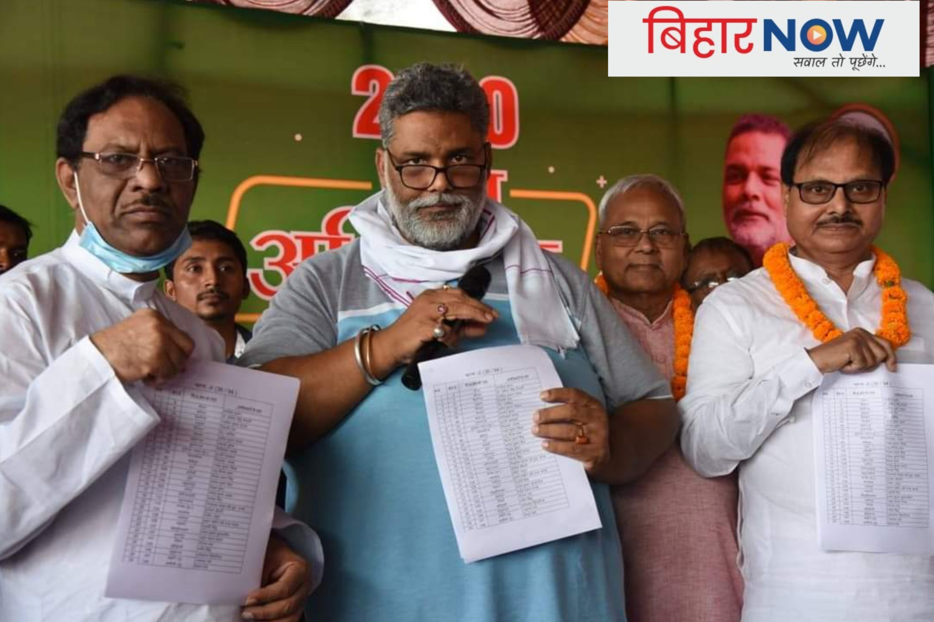 बिहार विधानसभा चुनाव के लिए जाप पार्टी यानी पप्पू यादव ने उम्मीदवारों की लिस्ट जारी कर दी है …. पप्पू यादव ने 50 उम्मीदवारों को टिकट दे दिया है…जाप ने सभी विधानसभा के उम्मीदवारों का नाम साझा की है…