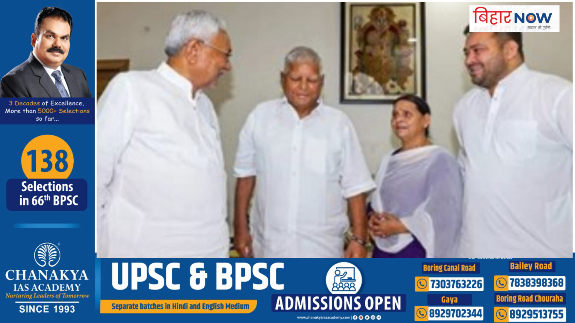 इस वक्त की बड़ी खबर बिहार की सियासी गलियारों से सामने आ रही है जहां एक बार फिर नीतीश कुमार ने लालू प्रसाद यादव से मुलाकात की है …. बिहार में मंत्रिमंडल विस्तार को लेकर सियासी हलचल के बीच लालू प्रसाद यादव से नीतीश कुमार ने दूसरी बार आज मुलाकात की है.. नीतीश कुमार की लालू प्रसाद यादव से मुलाकात के बाद एक बार फिर चर्चाओं का बाजार गर्म हो गया है… इस मुलाकात के कई सियासी मायने निकाले जा रहे हैंहैं…