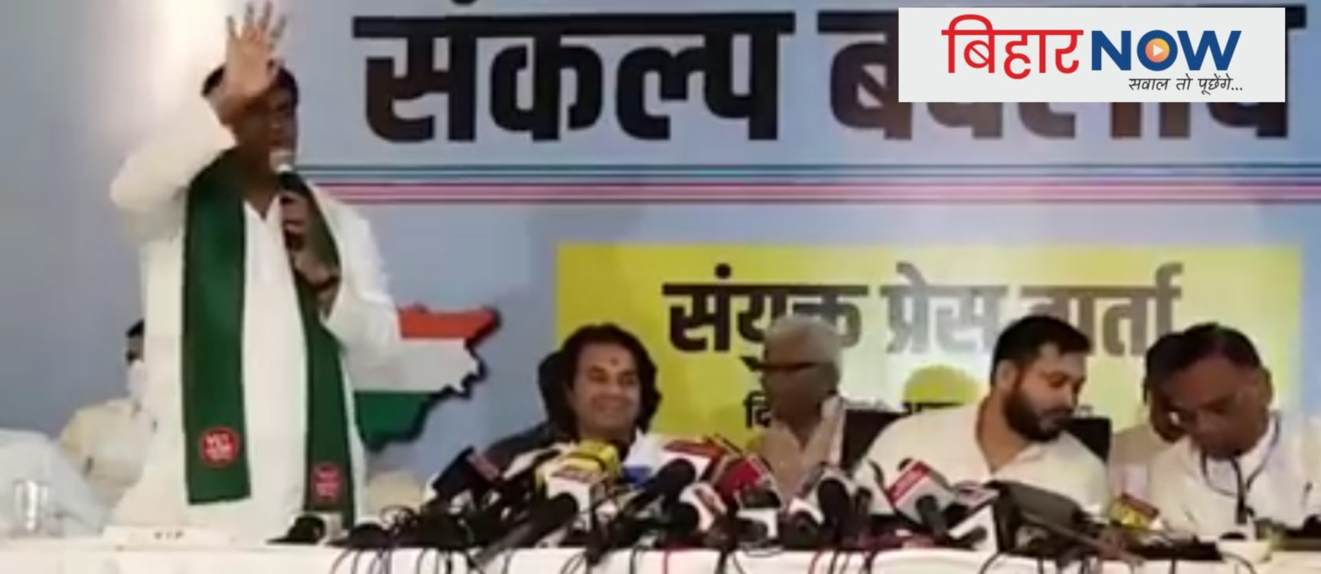 अचानक मुकेश सहनी खड़े होकर मीडिया को बोलने लगे कि मेरे पीठ में छुरा घोंप दिया गया है… इससे पहले मुकेश सहनी तेज प्रताप यादव, तेजस्वी यादव से हंस-हंसकर ,मुस्कुरा कर विजुअल में बातें करते दिख रहे हैं,जैसे पहले से सब बातें बन चुकी हो.. लेकिन  सीटों के ऐलान होते ही सियासी ड्रामा इस कदर शुरू हो गया कि मुकेश सहनी वहां से खफा होकर चलते बने…