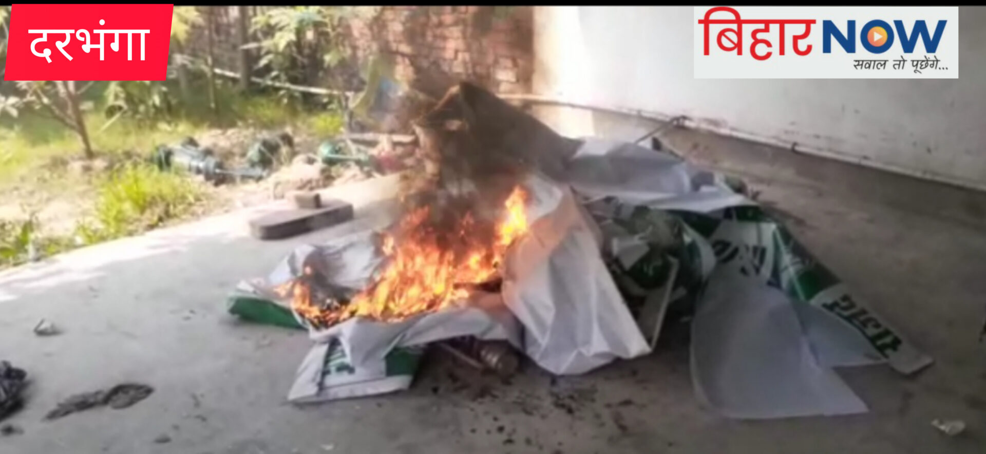 दरभंगा: बिहार में 24 सीटों पर एमएलसी चुनाव ) को लेकर दरभंगा आरजेडी में विद्रोह खत्म होने का नाम नहीं ले रहा है. अब इस पर पार्टी ने सख्ती बरतते हुए कार्रवाई शुरू की तो कार्यकर्ताओं की दोगुनी नाराजगी सामने आ रही है. ऐसा ही एक नजारा गुरुवार को दरभंगा में दिखा, जहां आरजेडी कार्यकर्ताओं ने पार्टी के चुनाव चिह्न लालटेन को पैरों से रौंदकर फोड़ डाला. कार्यकर्ताओं ने आरजेडी के पोस्टर बैनर फूंक दिए.